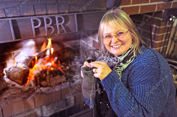Kristy-Lyn Hall, came all the way from Eltham. Keeping warm, knitting in front of the fire. 181719_01