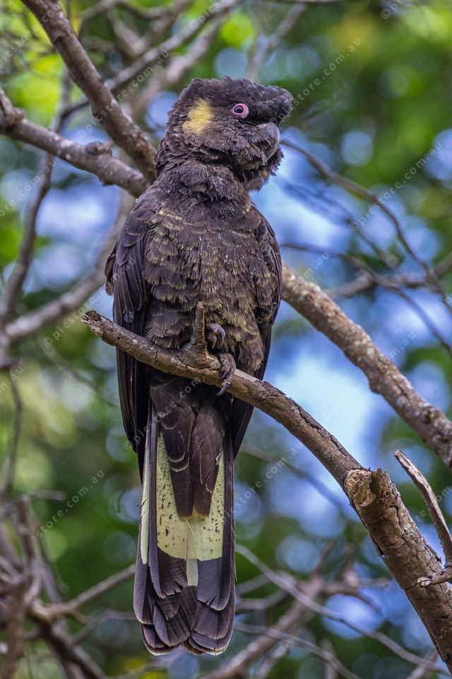 A Yellow Tailed Black Cockatoo overlooking Emerald Lake.