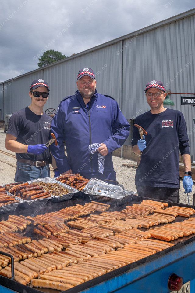 Emerald and Menzies Creek CFA doing a sausage sizzle at Menzies Creek Station.