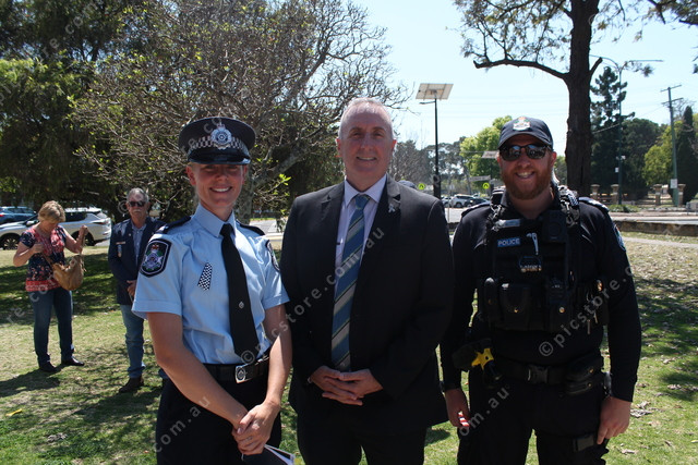 Stephanie McConnell, Michael Hauff and Benjamin Lyell joined colleagues to observe National Police Remembrance Day in Warwick. (Jeremy Cook: 506926)