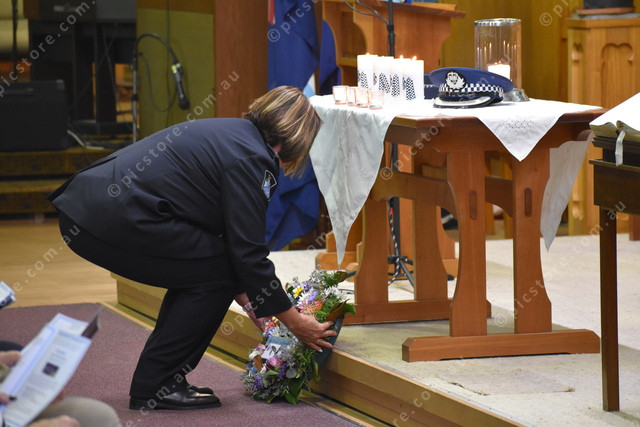 Inspector Kelly Hanlen laid the first of 10 wreaths. (Jeremy Cook: 506926)