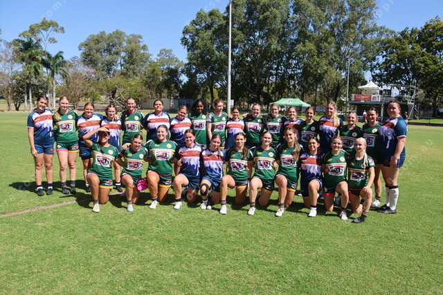 The Yeppoon-Rockhampton and Emerald teams come together after a hard-fought game.
