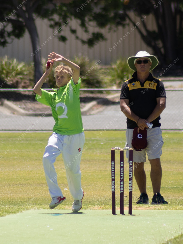Benji Foster on-steps to bowl for Tumby Bay. (528270_10)