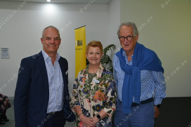 Panelists Nick Reade and Kathy Gramp with community member Bill Steele. (Jacinta Round) 510508_04
