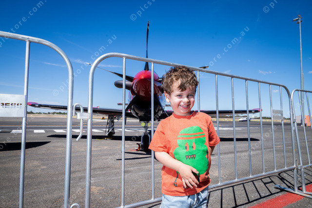 Francesco Mammone, 2, in front of a PC-21. Picture: Ben Gross