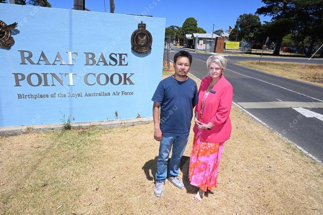 RAAF base Point Cook sale. Pic of local Ben Batchuluun and Cr Susan McIntyre. (Damjan Janevski). 532416_04