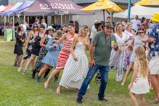 Punters doing the Nutbush at the after race party.