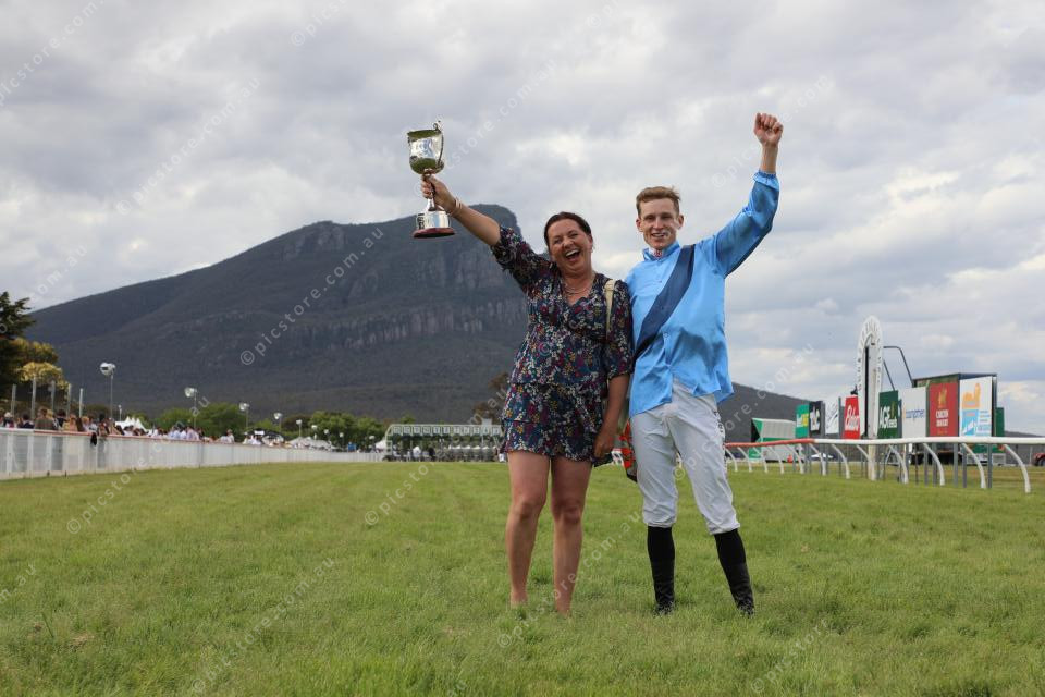 Cup Winner Trainer, EmmaLee Browne and Jockey Will Gordon, celebrating thier win.