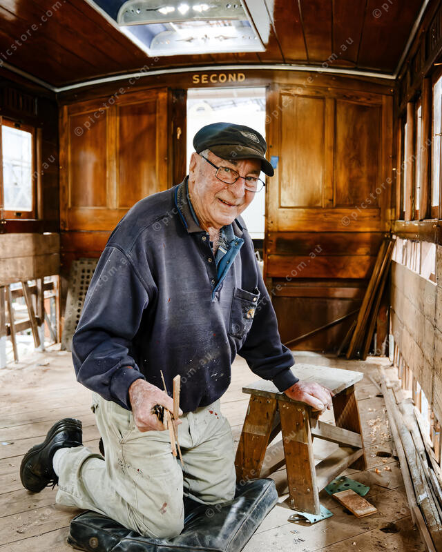 Geoff Grabert working on an ex 1887 South Australian carriage (Ivan Kemp) 516424_04