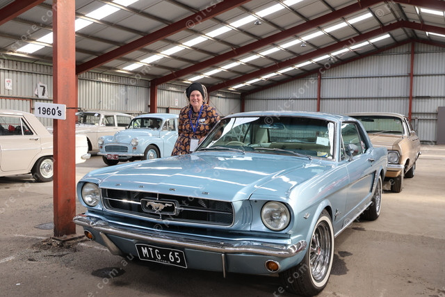 President of the Hamilton District Veteran Vintage Classic Car Club, Pam Pollock with her 1965 Mustang.