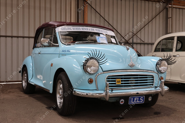 Flashing her eye lids, 1959 Morris Minor 1000 Convertible.