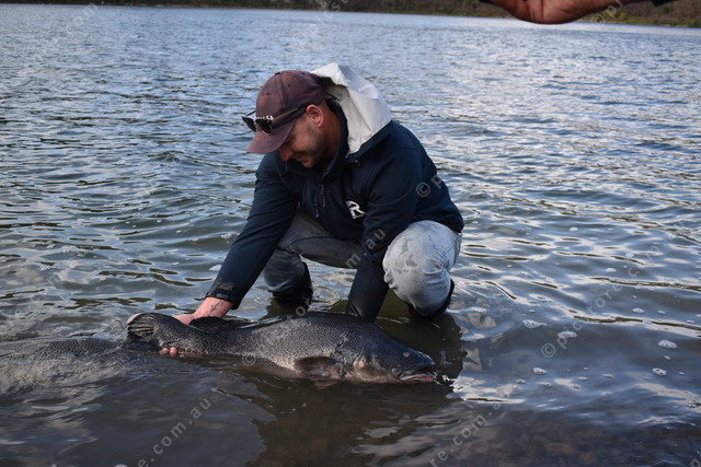 RecFish SA executive officer Asher Dezsery releases the Murray cod into Valley Lake.