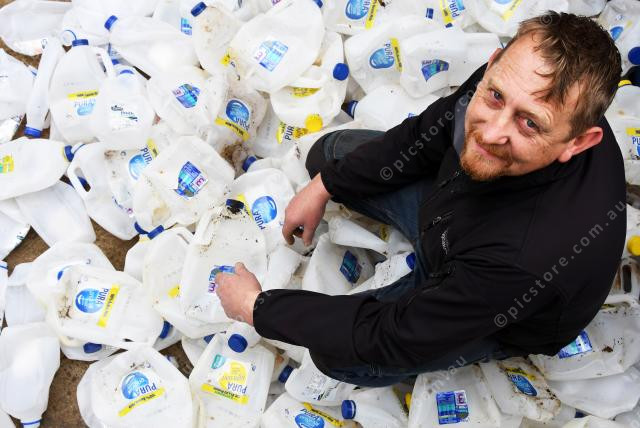 Corey Lewis with just a sample of plastic milk containers from a local cafe , ready for recycling 280937_22