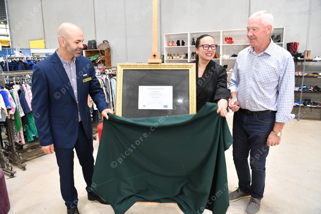 Opening of Melton Recycling Facility Stage 2. Pic of mayor Cr Steve Abboushi, Vic minister Harriet Shing and Mp Steve McGhie. Photo by Damjan Janevski. 464574_01