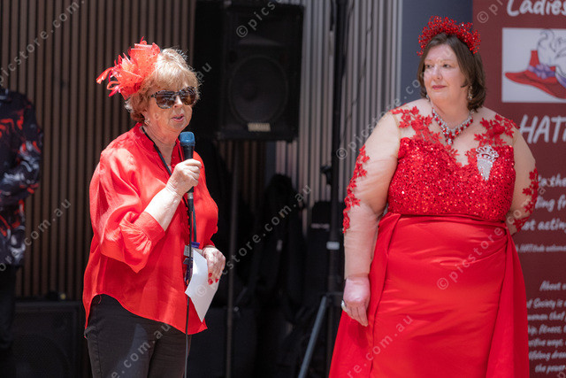 L-R Wendy Stewart President Berwick view club and Robyn Wright Queen of Ladies with HATitude (Australian Red Hatters).