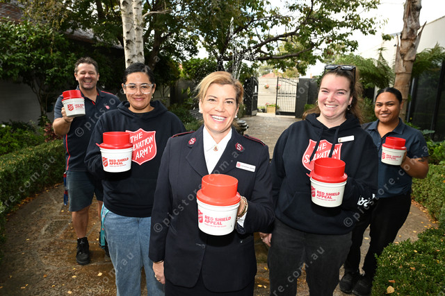 Werribee Salvos want people to get on board for the Red Shield Appeal. Pic of (L-R): Major Phill Abram, Rosita Faatau, Major Catherine Abram, Tara Abram and Pola Oscar. Photo by Damjan Janevski. 471240_01
