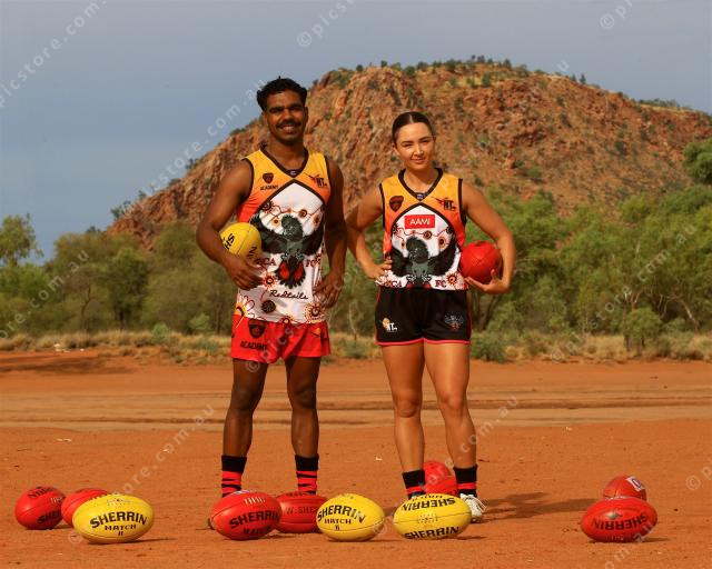 WEST MACS: Red and Pink tails players, Shaydan Close and Lara Harding at the Ilparpa Claypans. PIC: PHIL WILLIAMS 393899_01