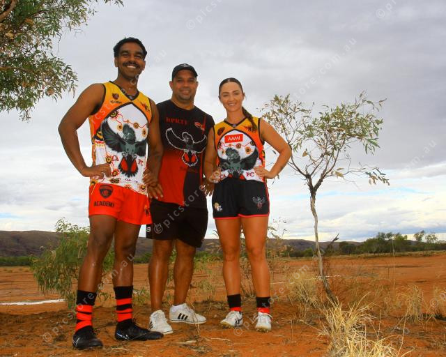 MENTOR: Red and Pink tails players, Shaydan Close and Lara Harding with mentor, Ian McAdam at the Ilparpa Claypans. PIC: PHIL WILLIAMS 393899_07