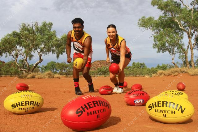 HANDBALL: Red and Pink tails players, Shaydan Close and Lara Harding with West MacDonnell Ranges behind. PIC: PHIL WILLIAMS 393899_11
