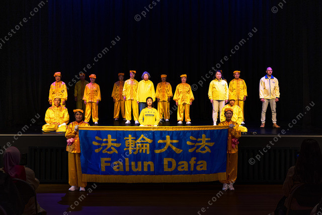 Performing on the stage Falun Dafa.