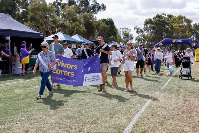 Leila Arthur leading the survivors and carers as they complete the first lap of the 2025 Gawler Relay for Life. 469109_50