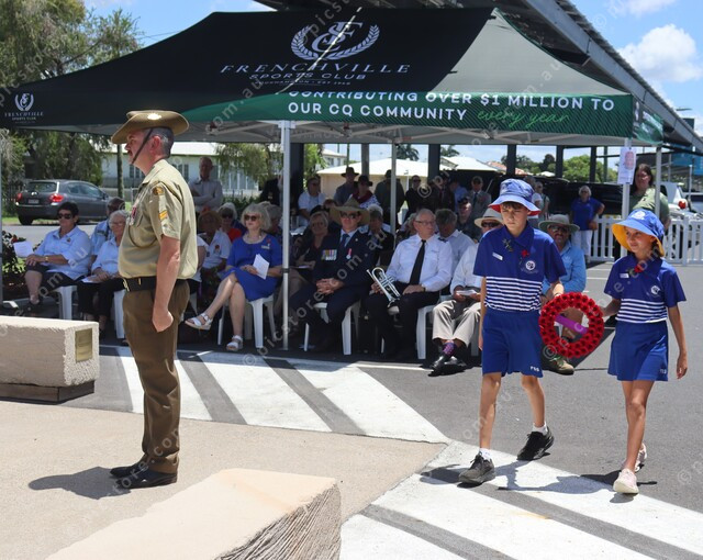 Frenchville State School students prepare to lay a wreath.