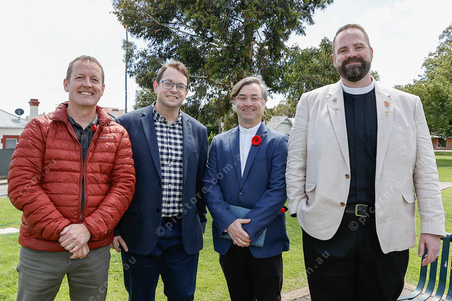 Pastor Darren Dwyer, Town of Gawler councillor Cody Davies, Rev. David McGillivray and Rev. Jack Monaghan. (519591_09)