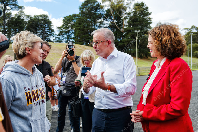 Prime Minister Anthony Albanese and local Federal Member Libby Coker talk with Sarah Martin (Ivan Kemp) 469336_03
