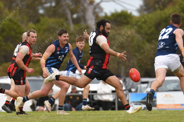 Owen Love, Jervois, drops the ball onto his foot to take a kick. (William Bailey: 505462)