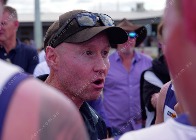 South Mildura Reserves coach at three-quarter time during the 2025 SFNL Reserves Grandfinal between Robinvale Euston and South Mildura