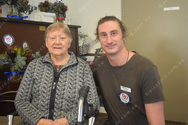 Resident Anne Murphy and personal care assistant Brock Muller.