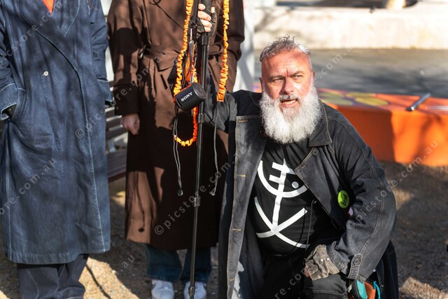 Troy Innocent leads the gathering across the way from Dandenong Station. 493642_09