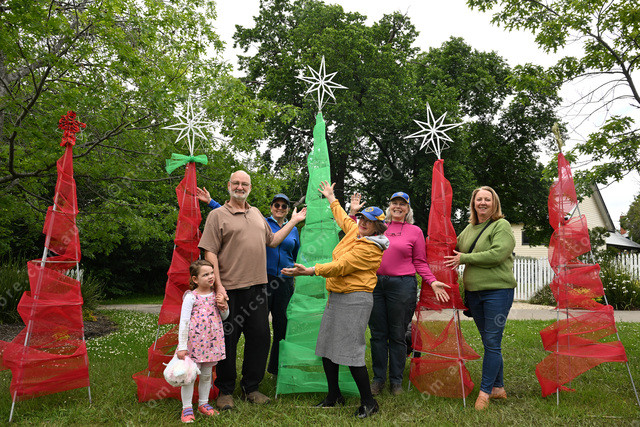 Riddells Creek Lions Members with their Christmas decorations in the town. Pic of Tamara and Justns Homburg with granddaughter Raelia (4), Susie Laurie, Melanie Kinsey and Narelle McGellin. (Damjan Janevski). 521515_03