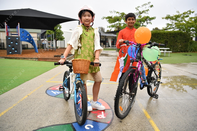 Truganina South Primary School Ride2School. Pic of students Katie and Kiyan. Photo by Damjan Janevski. 464907_04