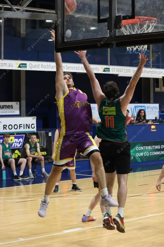 Titans’ Cameron Goldfinch with a tough finish over Frenchville’s Mitchell Kuhl