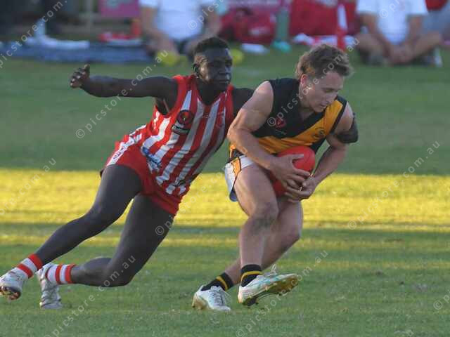 Rambler Lual Kelei and Mypolonga captain Jordan Hein