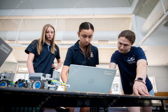 Abbey Ociepa, 13, Ava Toala, 13, and Allie Dawes from Robogals. Picture: Ben Gross 522835_02