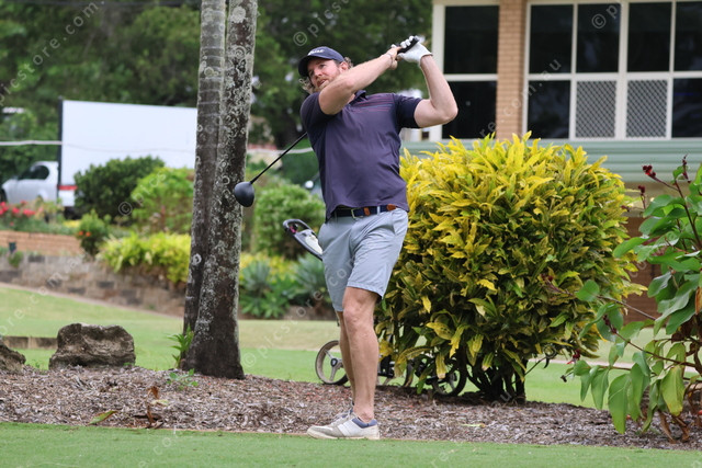 Andrew Hanrahan hits his drive down hole one.