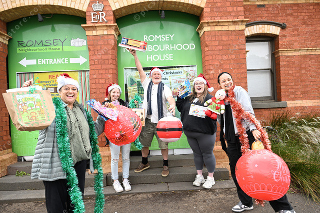 Romsey Neighbourhood House, Christmas events. Pic of manager Michelle Balthazar, with volunteers/students Bree Gaul, Glen Racovelis, Darcey Bossen and Layla Abraham. (Damjan Janevski). 516666_03