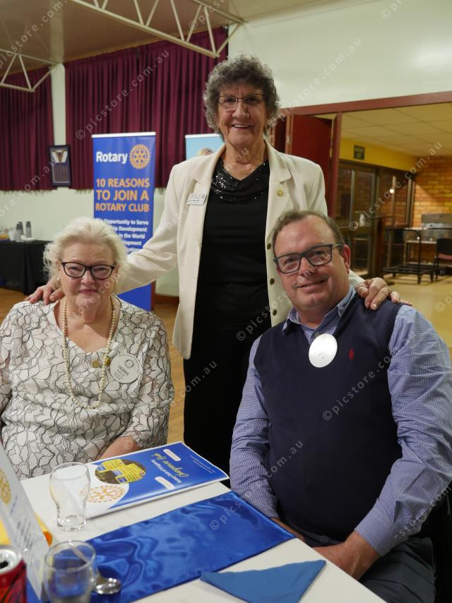 Secretary Debbie Hails, Michael Ryan, who was the 2024/25 Club Administration and the incoming 2025/26 Club Membership, with Bev Watter, Community Project and Services. 485804_10