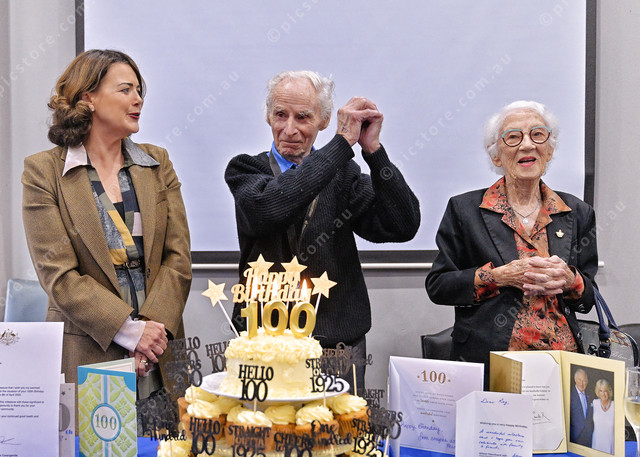 Roy celebrates his 100th birthday with Member for Corangamite Libby Coker and his wife Norma (Ivan Kemp) 468982_06