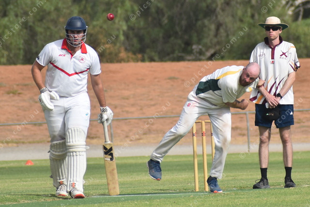 Gladstone/Georgetown’s Andrew Henderson bowls with Angus Combe ready to run. (462804)