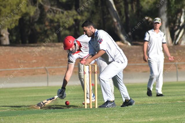 Crystal Brook’s Jake Clements slides to complete the run as Gladstone/Georgetown’s Jesse Philps tries to get the ball. (462804)