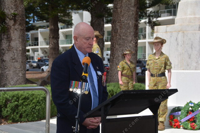 Delivering the Ode on Remembrance Day is Victor Harbor RSL president David Kemp. 516753_06