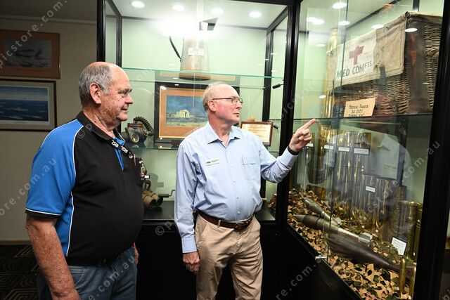 Werribee RSL are unveiling a new memorabilia cabinet. Pic of president Daryl Ryan and secretary Richard Conn. (Damjan Janevski). 531105_04