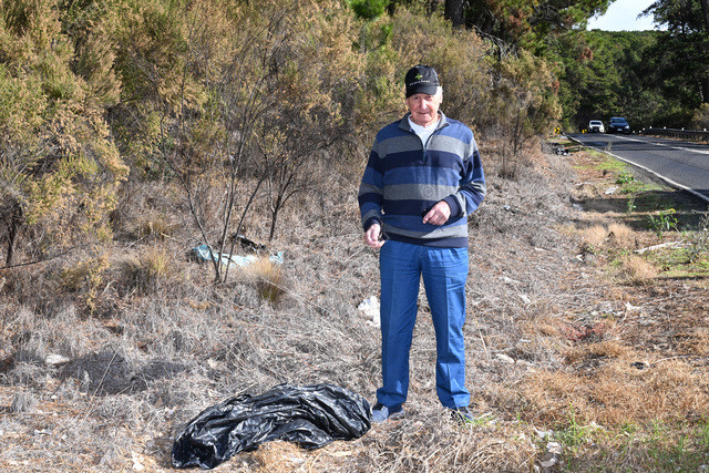 Pic of Alan (doesn’t want his last name published) and some rubbish by the road in Sunbury. Photo by Damjan Janevski. 480558_03
