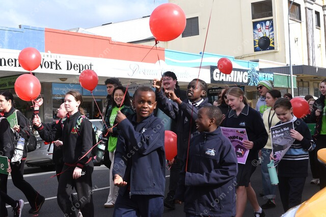 Local primary school students joined the walk down Commercial Street.