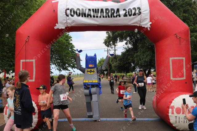 LEGO MAN: Human Lego Batman had a photo finish at the Coonawarra Running Festival.