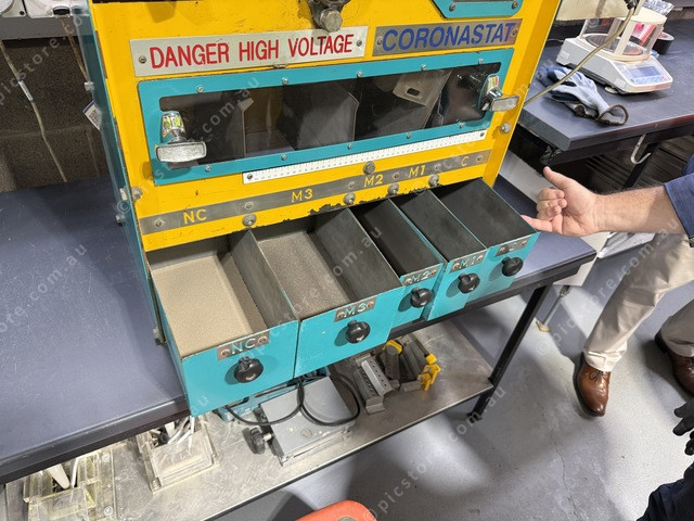 First pass of separating light from heavy metals from electrostatic separation. Picture: Lochlainn Heley