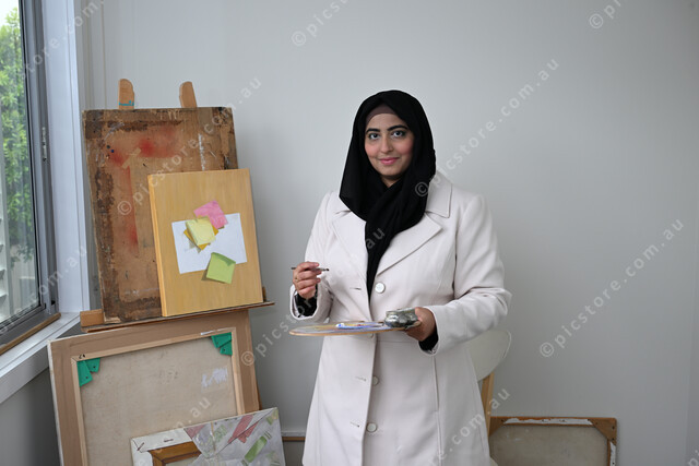 Pic of artist Saba Tanveer with her artwork. (Damjan Janevski). 523629_05